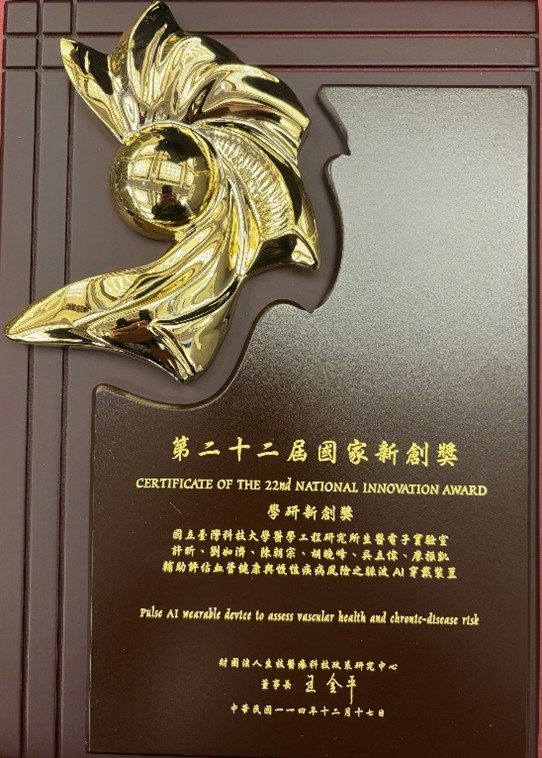 中文:輔助評估血管健康與慢性疾病風險之脈波AI穿戴裝置